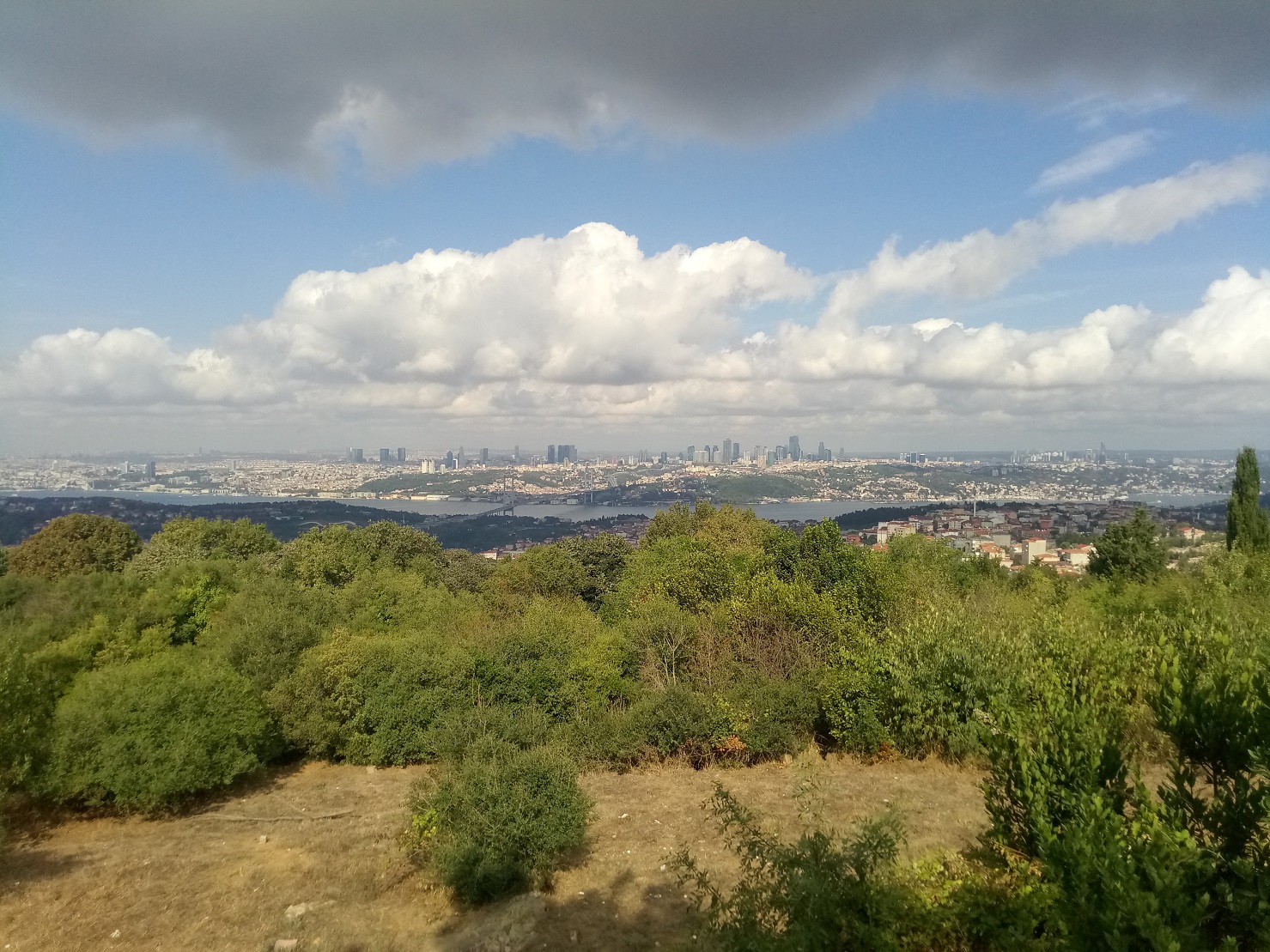 Вид со смотровой площадки слева от Моста мучеников 15 июля. Вид из Чамлыджи. Площадь Таксим. Улица Истикляль. Возле отеля Galata MGallery. Толстый серый пес, лежавший возле отеля, увидев что я иду в его сторону, неспешно переместился на пару метров в сторону, и снова прилег на тротуар. День 3.