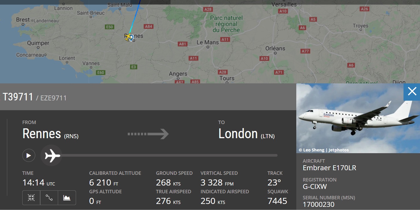 Rennes - Erj170, Eastern Airways. Впервые вижу данную ак на футбольных чартерах.