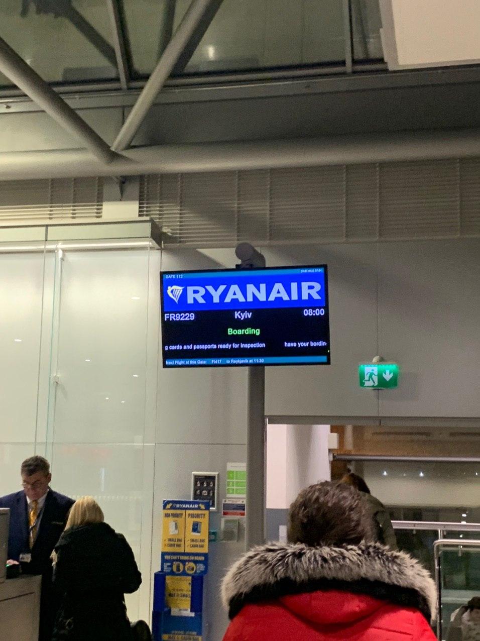 Хотя интересно, что на гейте и табло не указывают, в какой именно аэропорт Киева рейс прилетит.