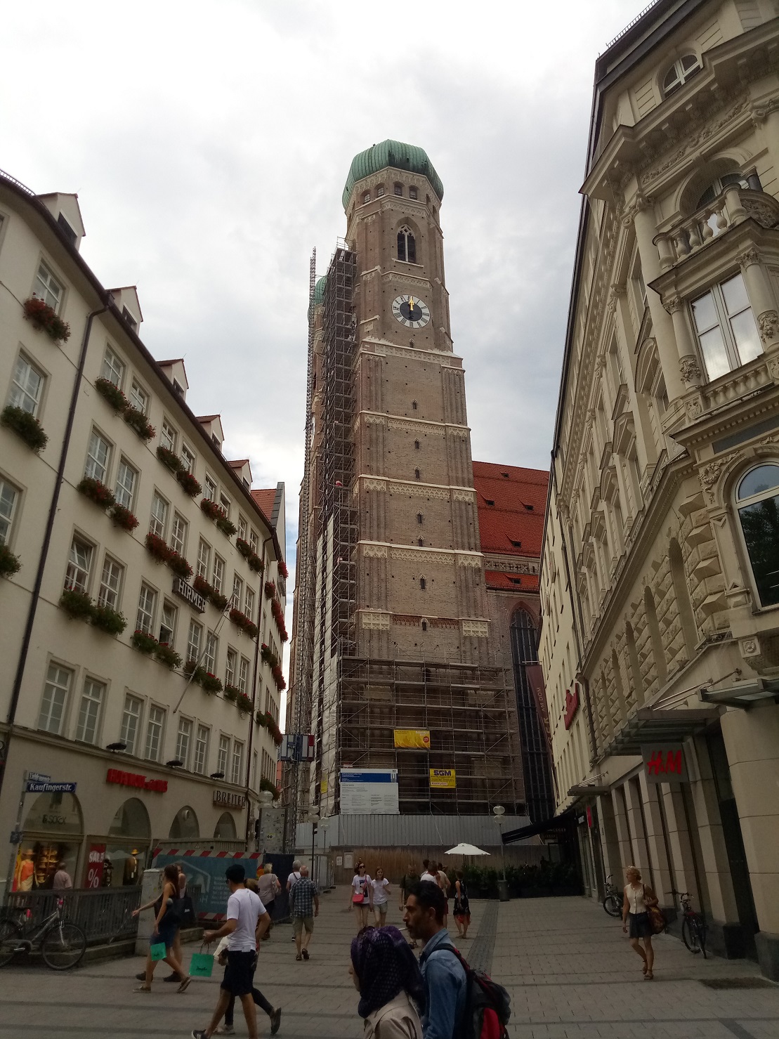 Неоготическая ратуша на Мариенплатц. Сейчас неоготические здания тоже являются памятниками архитектуры, как и готические. Так что лет через 100 и новоделы Скопье не отличишь от настоящей средневековой архитектуры. Фрауэнкирхе, одна из башен которой была в частично в лесах на реставрации. Бежевое здание в центре - снесенный ныне отель Koenigshof. На его месте строяет его же, но в более современном виде. Вообще странно, как в центре Мюнхена построили столь невзрачное здание, похоже то ли на крытый паркинг, то ли на заводской цех, еще и расположили в нем 5-звездочный отель. Bayerstrasse, на которой находятся ЖД-вокзал и куча отелей, в т.ч. 5-звездочных. Продолжение следует.