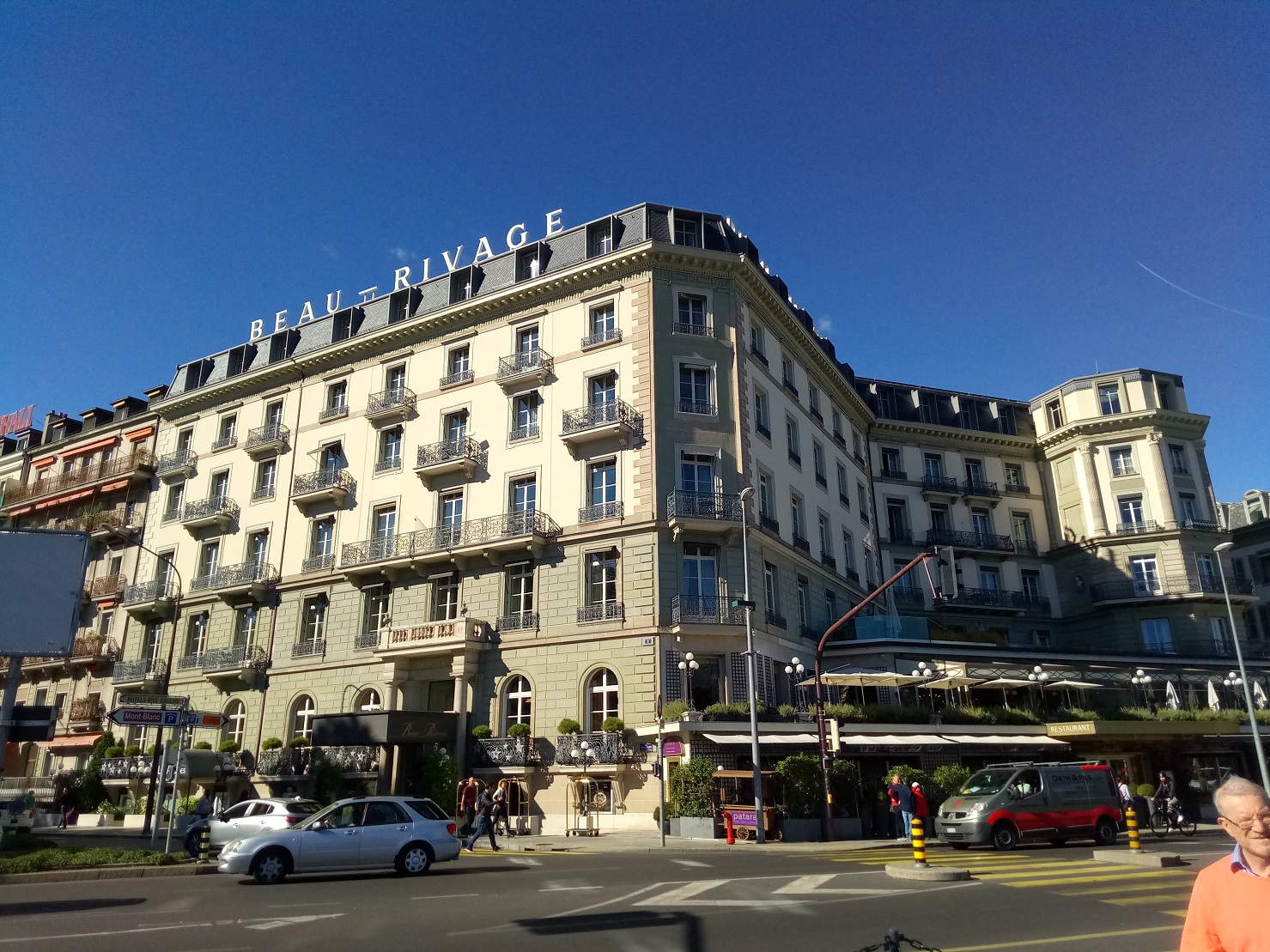 Сам отель. Красивые виды на Женевское озеро и саму Женеву. Поднялся ветер и фонтан временно отключали. Продолжение следует.