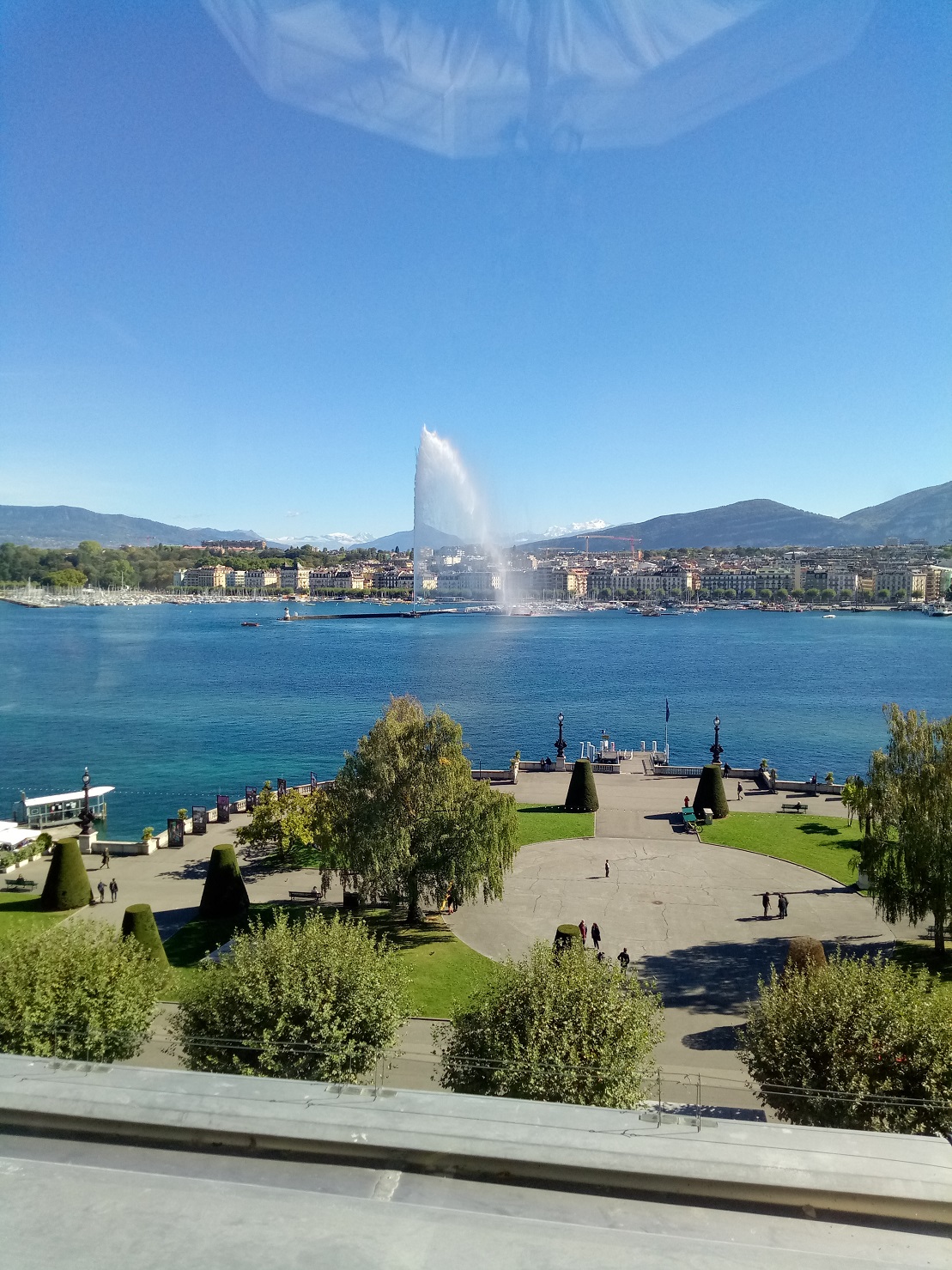 Сам отель. Красивые виды на Женевское озеро и саму Женеву. Поднялся ветер и фонтан временно отключали. Продолжение следует.