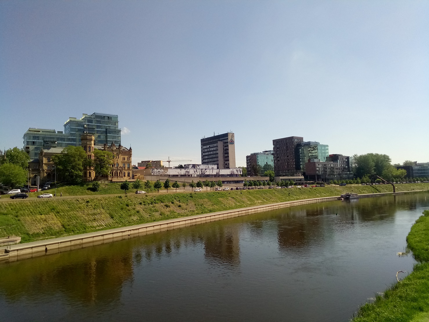 Трамваев, как ни странно, в Вильнюсе нет. Собственно, река Нярис. И небоскребчики. В том районе провел совсем немного времени. Район весьма небольшой и не располагающий прогулкам в отличие, от, скажем, делового района Варшавы.