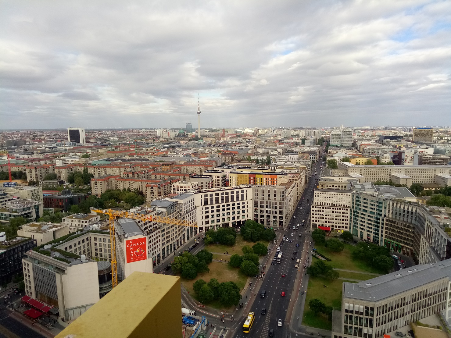 Телебашня, и за ней легендарный 41-этажный отель времен ГДР, который изначально назывался Hotel Stadt Berlin, а сейчас брендирован как Park Inn by Radisson Berlin Alexanderplatz. И виды с телебашни. Продолжение следует.