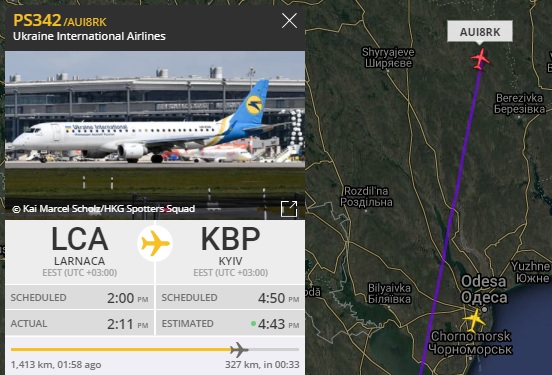 Как раз смотрел за бортом UR-PSM, который сейчас в Одессе, и увидел рейс МАУ из Ларнаки.
