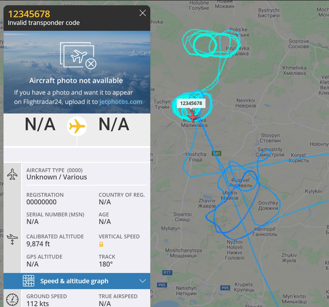 flightradar24.com зафиксировал SQUAWK 7700 с бортом МАУ UR-PSM.