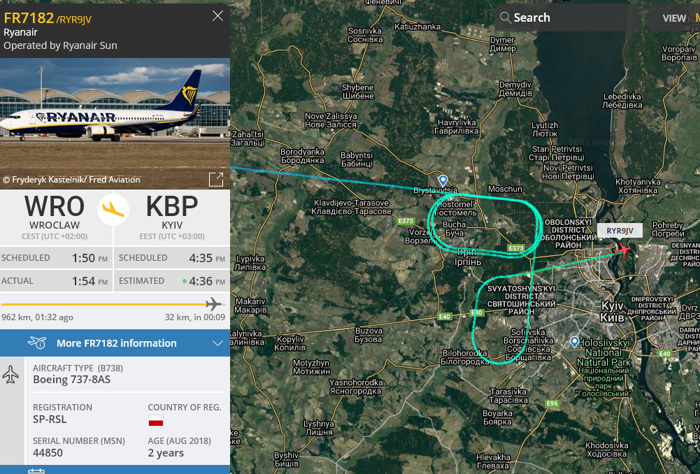 Раян круги мотает над Ирпенем. В Борисполе гроза?