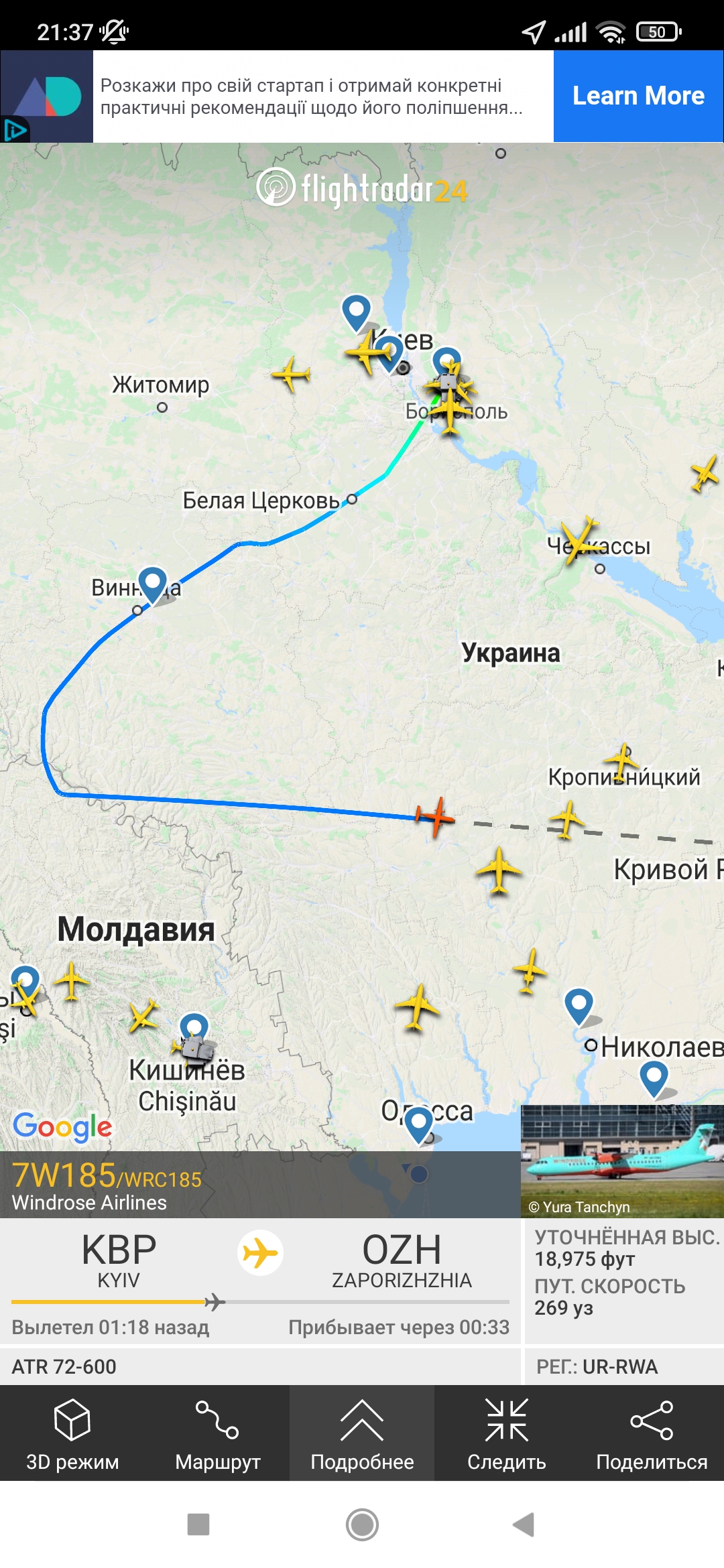 Рейс Львов-Одесса идет необычным маршрутом. Обычно летит по коридору южнее Хмельницкого.