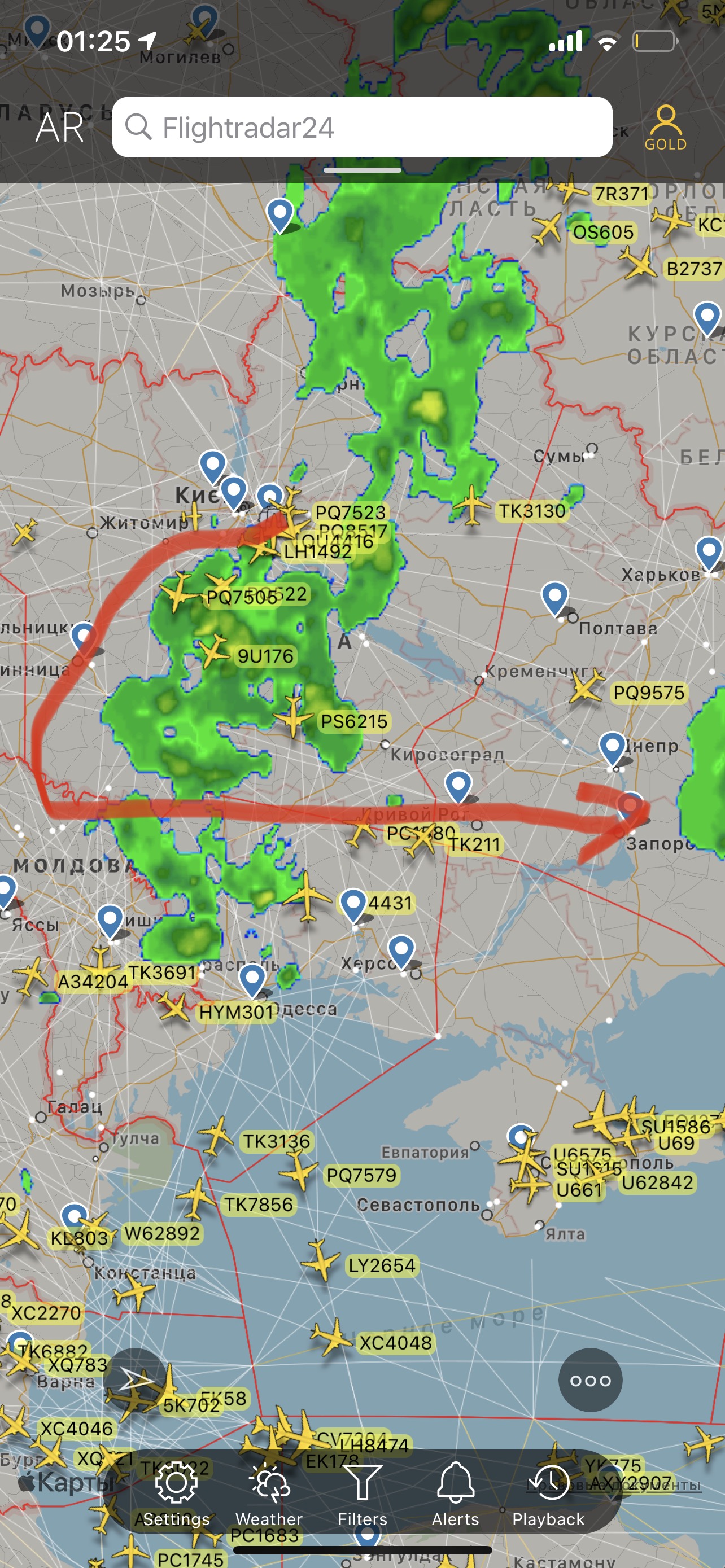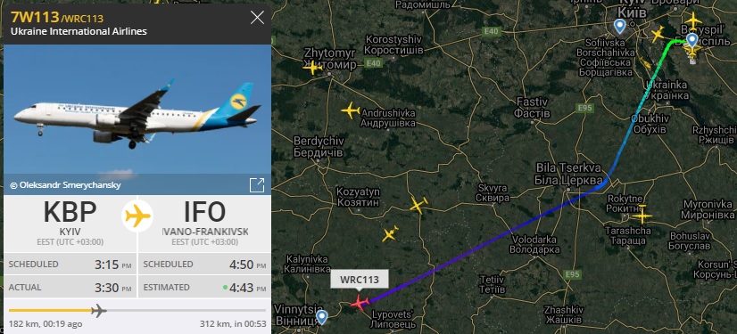 Рейс Львов-Одесса идет необычным маршрутом. Обычно летит по коридору южнее Хмельницкого.