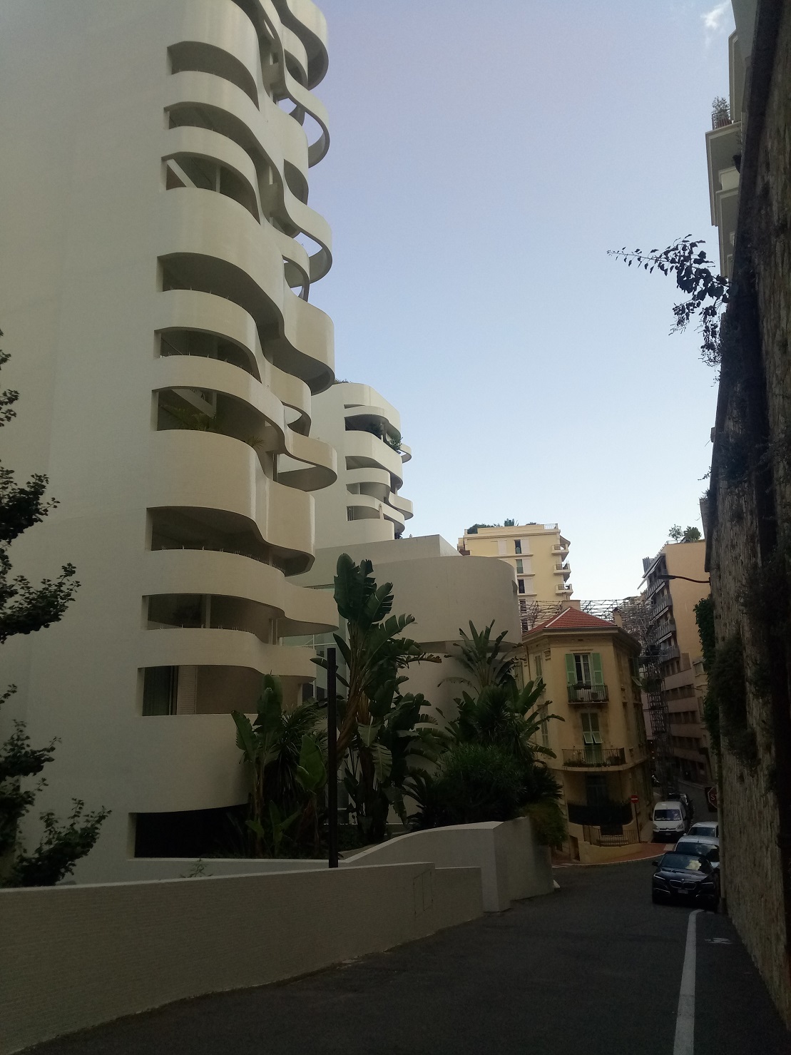 Вот, собственно, номер. Вид был горы и дома, среди которых был один из моих любимых объектов в Монако - жилой небоскреб Millefiori 1969 года постройки (справа на втором фото). Отель внешне.