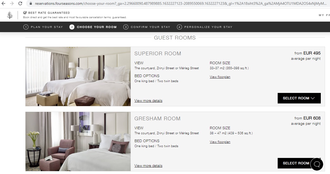 Цены в отеле Four Seasons Budapest (без учета налогов).