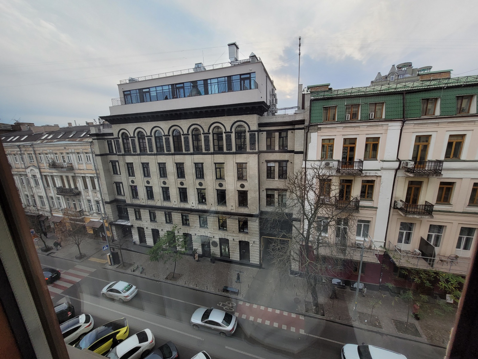 Я приехал около 12:30, и номер был уже готов. Так что, несмотря на то, что я бронировал не через официальный сайт, ранний заезд все равно мне сделали. Номер был с "видом" на Крещатик, точнее на строительные леса. Но все же немного было видно главную улицу столицы. Шум от строительных работ ощущался очень слабо, почти незаметно. Судя по всему, в номера, где ощущается шум от работ, просто не заселяют, и это правильно.