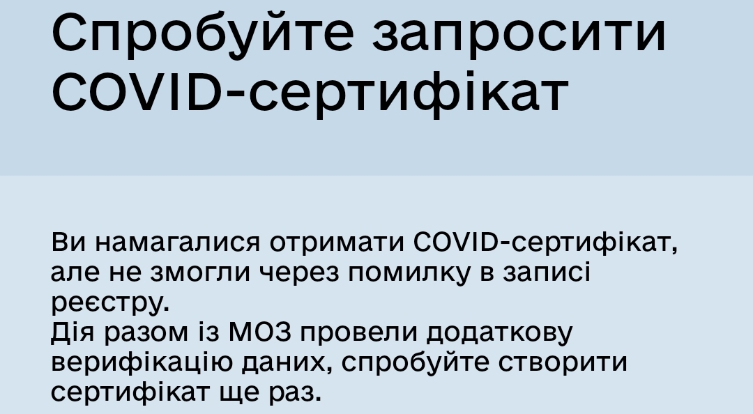 А тим, хто вколовся другою дозою і ще не встиг сформувати сертифікат - доведеться зачекати поки відновиться робота реєстру.