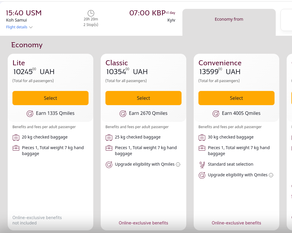 Честно говоря, расписание у QR - дно, как по мне. Удобными были бы послеобеденные рейсы из Дохи, которые стыкуются с дневной волной прилетов в Доху, т.е. с вылетом часов в 15-16 и прилетом в КВР в 20-22 часа. Точно также, утренний вылет из Киева, чтобы попасть на дневную волну стыковок.