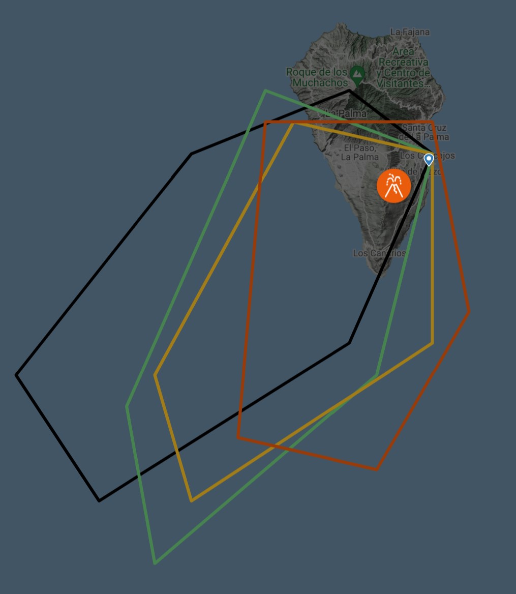 На Канарах или опять или до сих пор. А обозначения такого раньше не наблюдал, теперь извержения не пропустить, их сразу видно по всему миру.