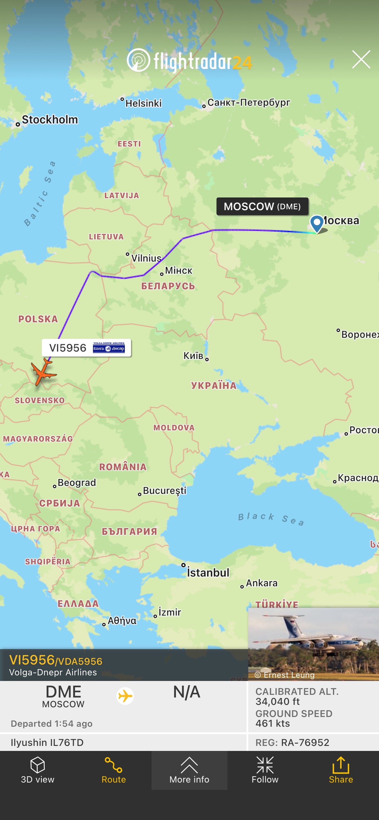 Братислава. Видимо спецразрешение, возможно для эвакуации дипломатов. Не думаю, что он бы залетел так далеко без разрешения.