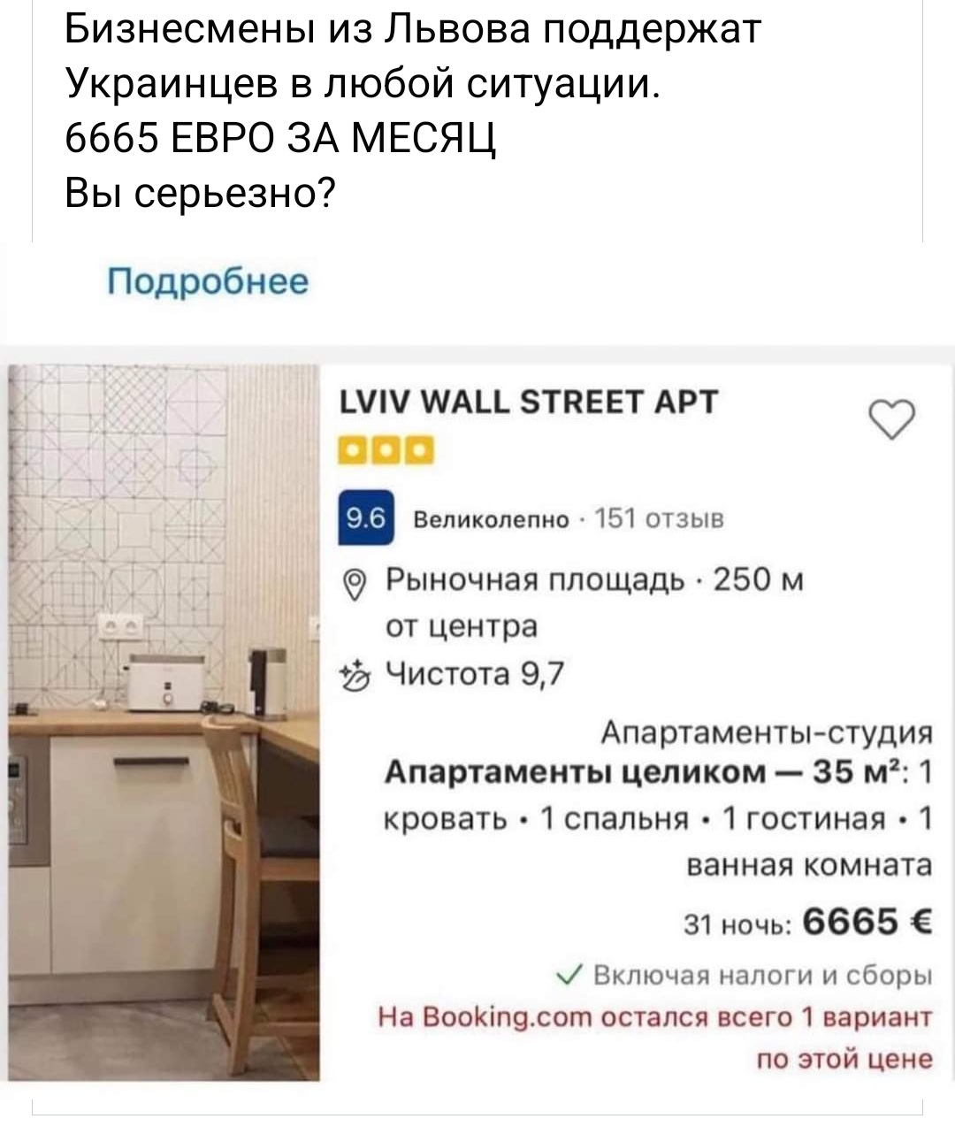 220 евро ночь. Посуточная сдача. На площе Рынок... Где тут зрада?
