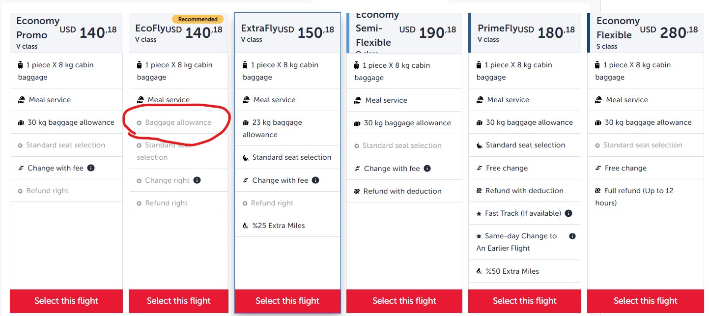 у туркишей появился тариф эко без багажа