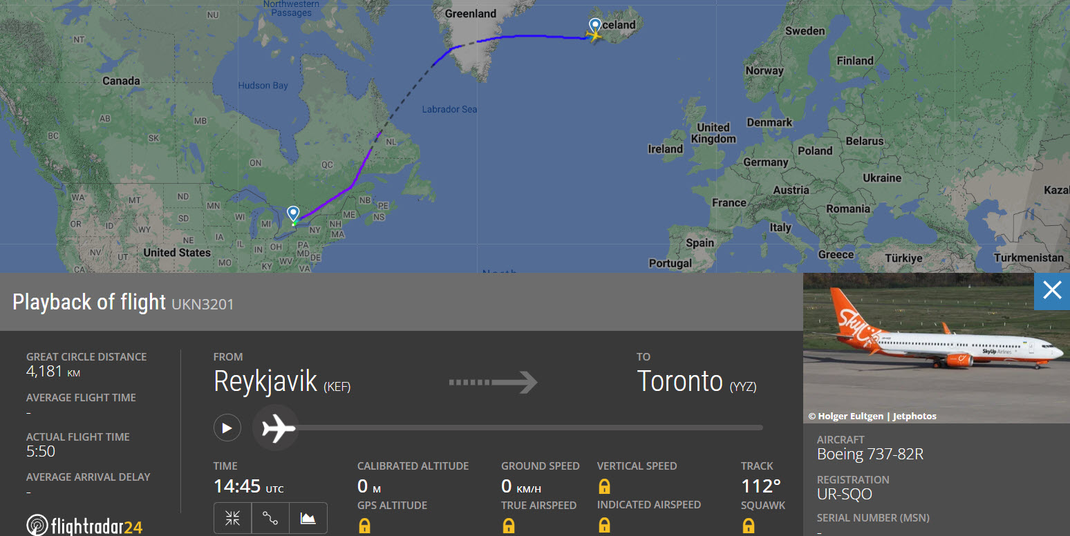Можна дізнатись, що за літак летів 8 квітня о 15:30 приблизно за місцевим часом над Монреалем, якраз під час сонячного затемнення і за курсом, що співпадав з ним - на північний схід.. 4 двигуни..
