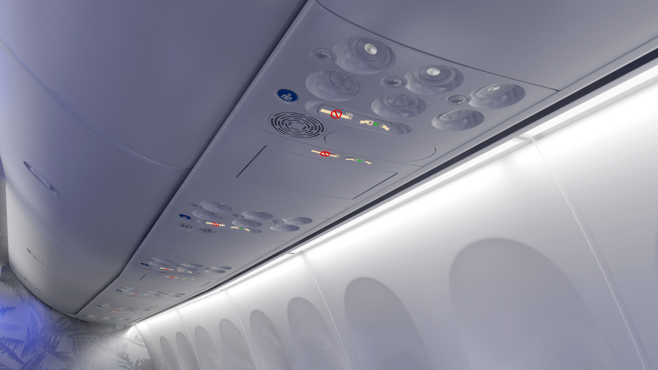 Заказчики смогут выбирать различные режимы освещения салона в широкой цветовой гамме: от мягких небесно-голубых тонов во время посадки на борт до спокойных, расслабляющих цветов заходящего солнца в вечернее время.