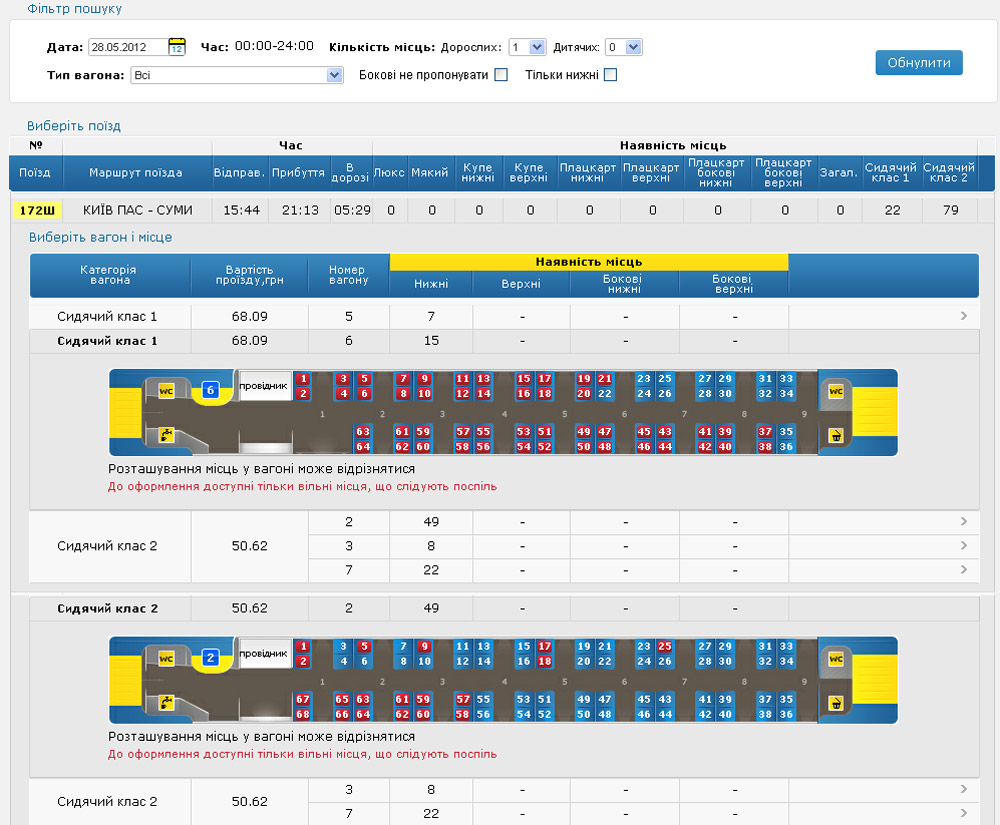 Вообще-то, речь о Киев-Сумы, а не Х*йдаях.ATk писав:Olek , на е квитке неправильные схемы. Единственное место где правильные- на booking.uz.gov.ua. Во втором классе 3+2, и сиденья поуже.