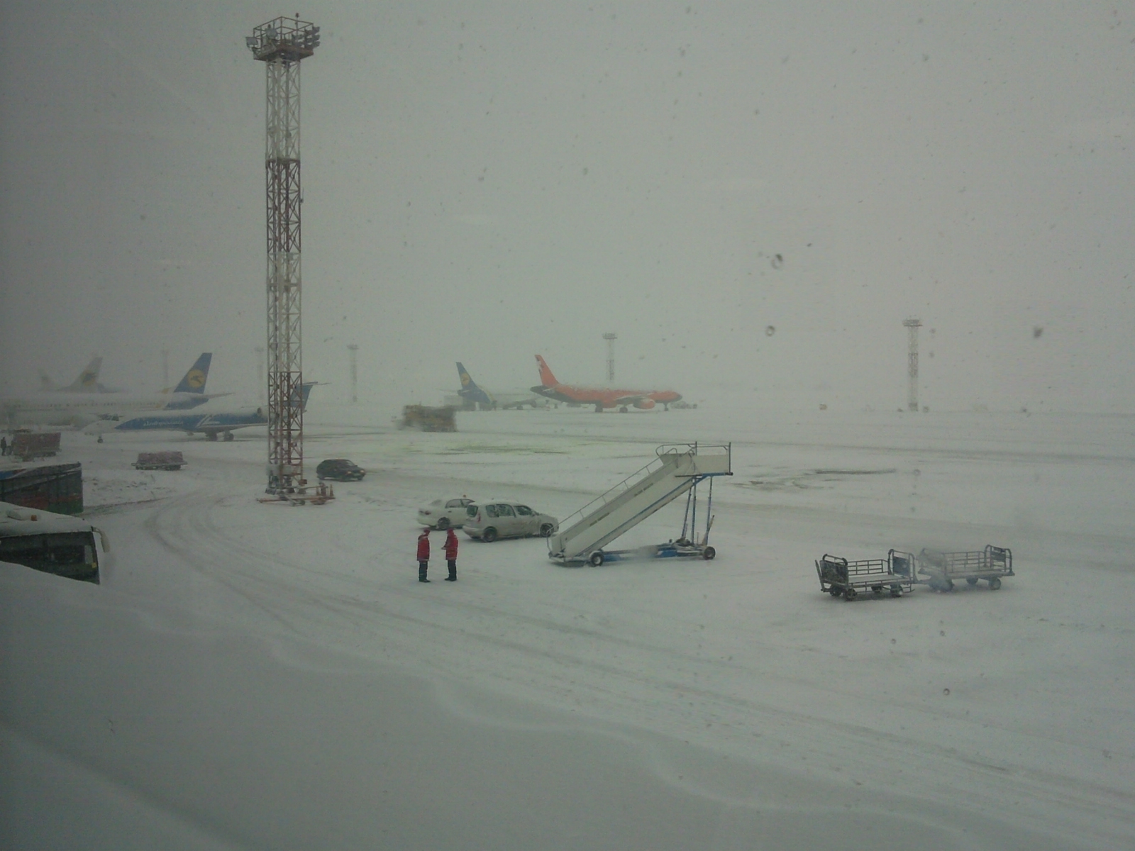 Це були якраз дні, коли Бориспіль частково зменьшував навантаження через великі снігопади. Багато рейсів сідали на запасні аеродроми. І якраз на дату вильоту 22 січня була така погода. По-перше літак прибув із запізненням в 30хв., а далі ми десь годину сиділи в літаку, очікуючи свою чергу на обробку протильодовою сумішшю. Виліт затримався на півтори години. Була велика хуртовина, тому при злеті ми одразу ж попали в хмару, почалось гойдання. Але більш за все я був враженний тим, коли пілот забрав закрилки. У В737-400 - нормально десь на висоті 600-700метрів. В нашому випадку це було майже відразу. Я так зрозумів пілот намагався не дати взятися льоду на необроблениій частині крила, а саме на закрилках.
