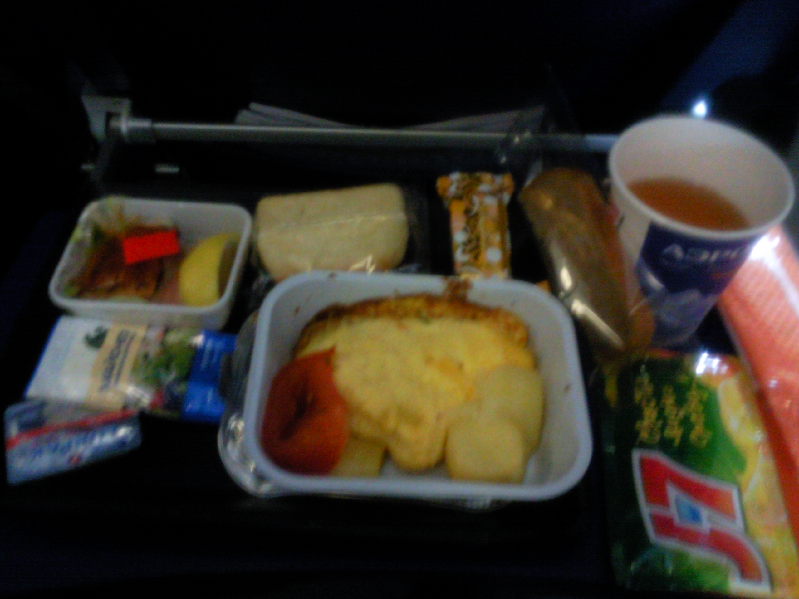 И опять аэрофлот задержался…Рейс был ничем не примечателен. Слава Богу кожаные сидения Recaro, смог немного поспать. Завтрак был не совсем вкусным: салат из пересушенной рыбы, омлет, 2 конфеты, сок, чай/кофе.