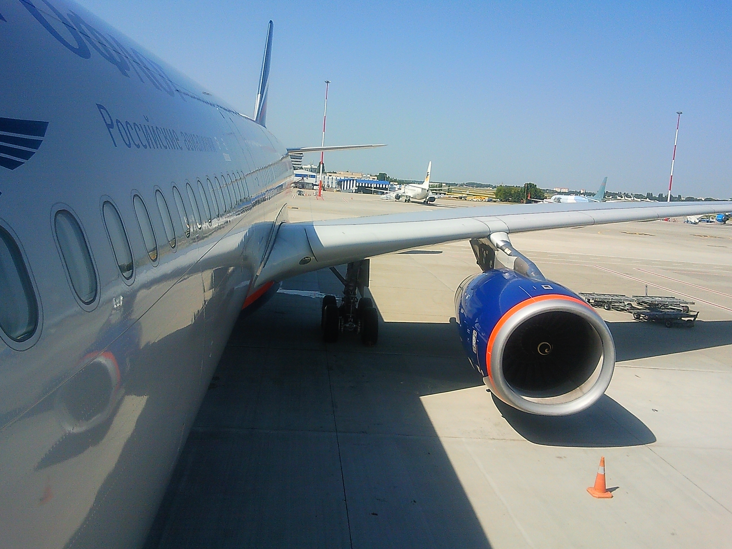 Сидя в Борисполе в зоне ожидания, проверил flightradar и увидел, что самолет идет с опозданием. Это немного расстроило, но в Москве у меня стыковка 2,25часа, поэтому все должно было получиться. Пилот очень спешил в Борисполь, так как на рейс в Москву обычно много транзитных пассажиров, которые могли не успеть. Видимость позволяла зайти визуально на 36 правую, что я успешно наблюдал из зала ожидания. Опоздание все равно составило 30 минут. Ну да Бог с ним, вроде бы успеваю, к тому же самолету всего 3 мес., новые кожаные кресла Recaro, мое любимое место 20F.Приятный взлет, хорошая погода, целый 20-й ряд пустой – все ок. Но на подлете к Москве случился ньюанс. Пилот очччень спешил и сделал следующее: на высоте где-то 4км. Он выпустил закрылки во взлетный режим, добавил на половину speed brakes и выпустил ШАССИ!!!! И начал стремительное снижение для визуального захода. Сначала я не поверил своим ушам и все ждал на глиссаде, что вот сейчас будет характерный звук от выходящего шасси, но его не было. Пилот действительно выпустил его на высоте для торможения. То беж минут 10 до посадки мы уже летели с выпущенным шасси. Не знаю, насколько это опасно, знаю, что первый тест полет самолета делают с выпущенным шасси, но насколько допускает такое. Короче мы сели довольно плавно и сразу же экстренное торможение для попадания на ближайшую рулежку, так как время. Но Шереметьево готовило облом: все слоты и гейты были заняты и нам пришлось еще 40 минут сидеть в самолете... Большая половина транзитных уже опоздала, у меня оставался 1.15ч и все-таки какая-то надежда. Но нужно было бежать в терминал Д и все-таки была пятница, народу тьма. Паспортный прошел минут за 5, за 10 домчался до терминала Д и тут ждала огромнейшая очередь на проверку багажа. По своим прогнозам оценил, что буду стоять минимум минут 40, а то и более, но за 15 минут уже был в переполненном зале ожидания. Слава Богу самолет на Красноярск также задержали на 30 мин., поэтому точно успевал. Но раздражали толпы народу, жара и то, что за 15 мин. до посадки на рейс сменили гейт и пришлось протискиваться по переполненному залу ожидания с одного конца в другой. Короче аэрофлот+Шереметьево в пятницу дали сбой.