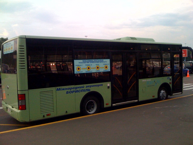 Стоял у терминала Б: двери закрыты, водителя не было.GURU писав:Заработал новый внутренний трансфер (бесплатный) между терминалами. Маршрут по кольцу (идентичный снятому желтому автобусу), выполняет один небольшой автобус (19 мест) марки ЗАЗ (бледно салатового цвета),каждые 20 минут.
