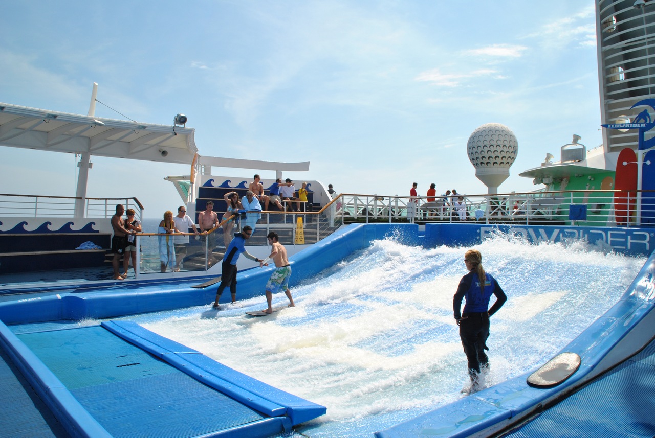- Первые в мире нововведения на круизных лайнерах, включая ледовый каток, стену для занятий альпинизмом, возвышающуюся над океаном на 60 метров, и площадку для мини-гольфа на 9 лунок