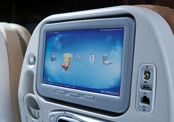 Очень хорошо и удобно продумана конструкция кресла и персональная мультимедиа система , удобный откидной столик раскладывающийся на две половинки , держатель стаканов вынесен всторону и не мешает