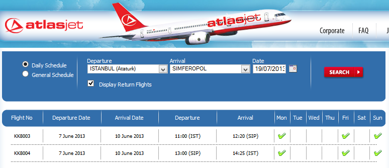 В Симферополь (аннексирован Россией) на линию Симферополь (аннексирован Россией)-Стамбул(Ататюрк) заходит турецкая авиакомпания ATLASJET имеющая сеть маршрутов по Турции.