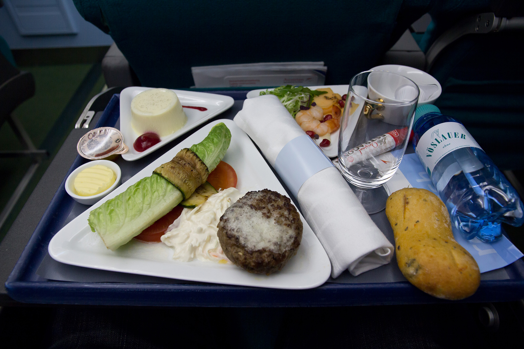 In Economy Class, meanwhile, you can choose from two different two-course menus. Depending on the time of day, you can build up your strength with breakfast or a snack before landing. Throughout the flight, you can choose from a wide range of different free drinks, from mineral water through to Austrian wines, beer, coffee and tea, and spirits.