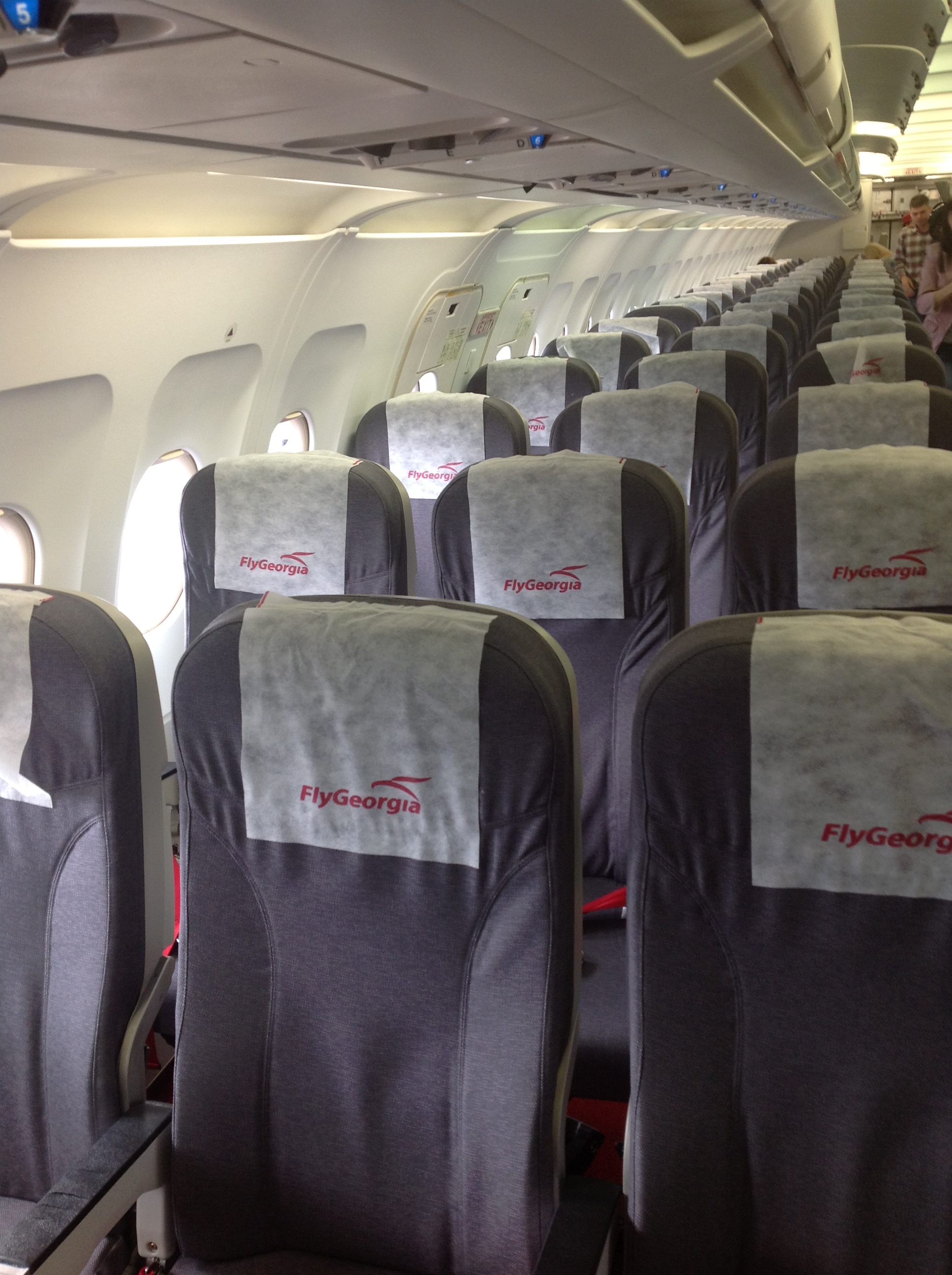 На FlyGeorgia посадка опять через автобус. Рейс почти полный, но места свободные всё равно были. Бортпроводники опять девушки и один мужчина. Некоторые бортпроводницы были те же, что и на моём рейсе 9.05.