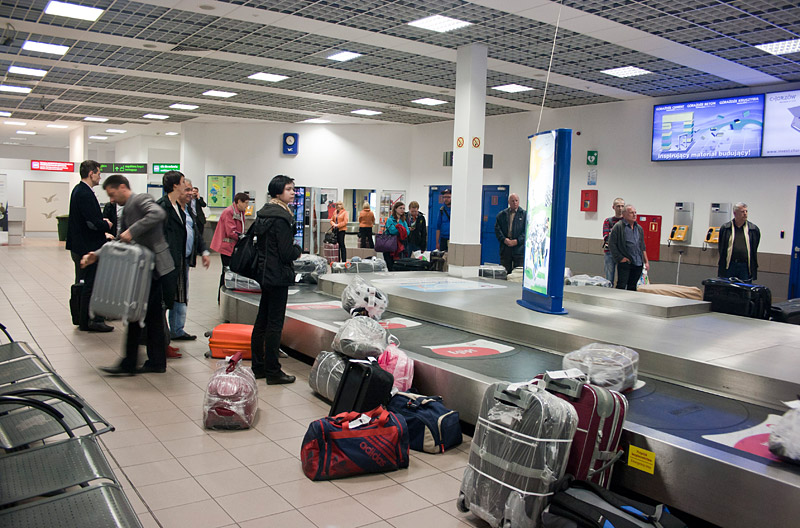 Багажные ленты в Катовице маленькие, потому когда вы дойдете до нее, чтобы забрать свой багаж, он может быть уже кем-то снят до вас.
