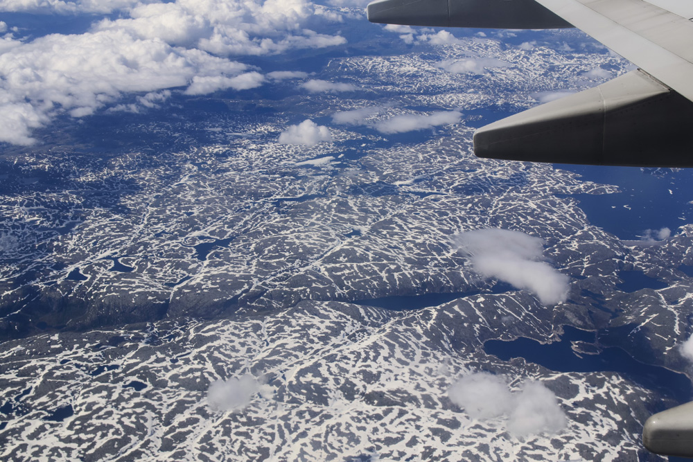 Норвежские фьорды во время перелета из Осло в Ставангер и обратно.
