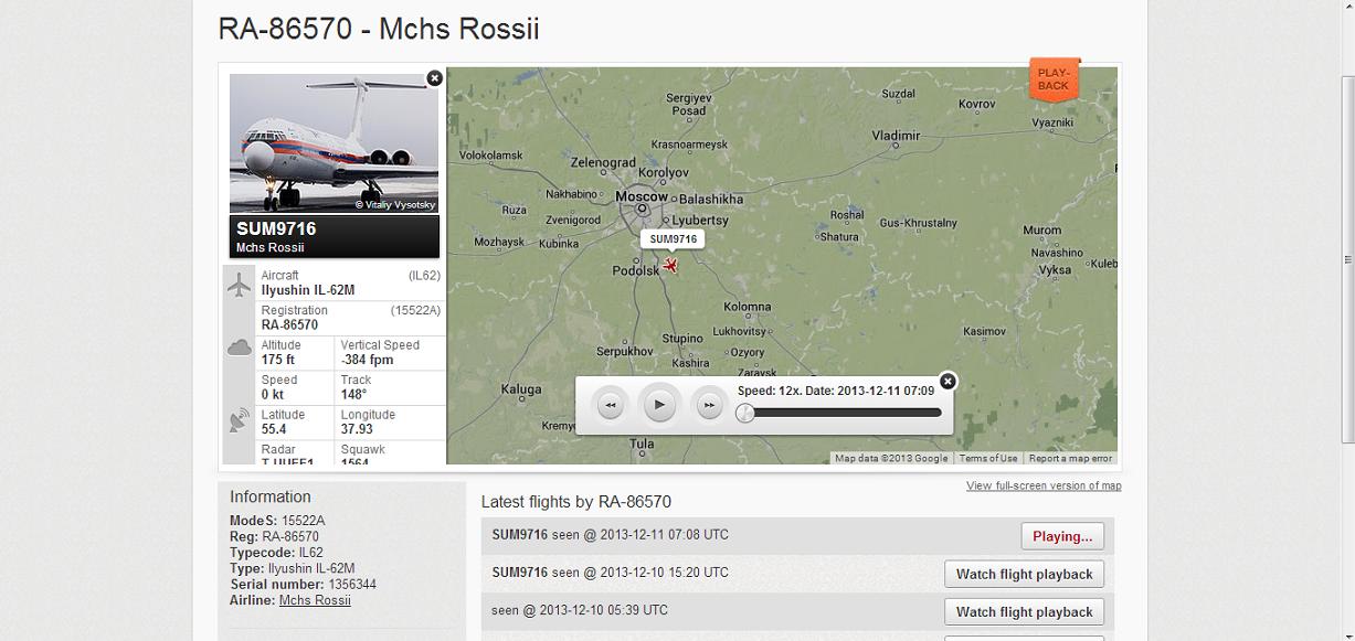 И да, литерные президентские борта на нем не отображаются, так же не отображаются военные самолеты.