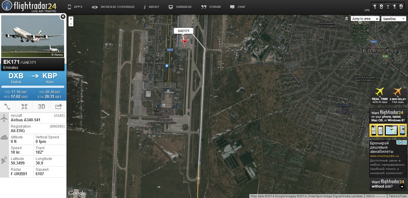 Ого! Дійсно знаменитий лайнер. Як я зрозумів, після серйозного ремонту, він переведений на маршрути малої і середньої протяжності.Liam писав:до речі до нас летить знаменитий A6-ERG