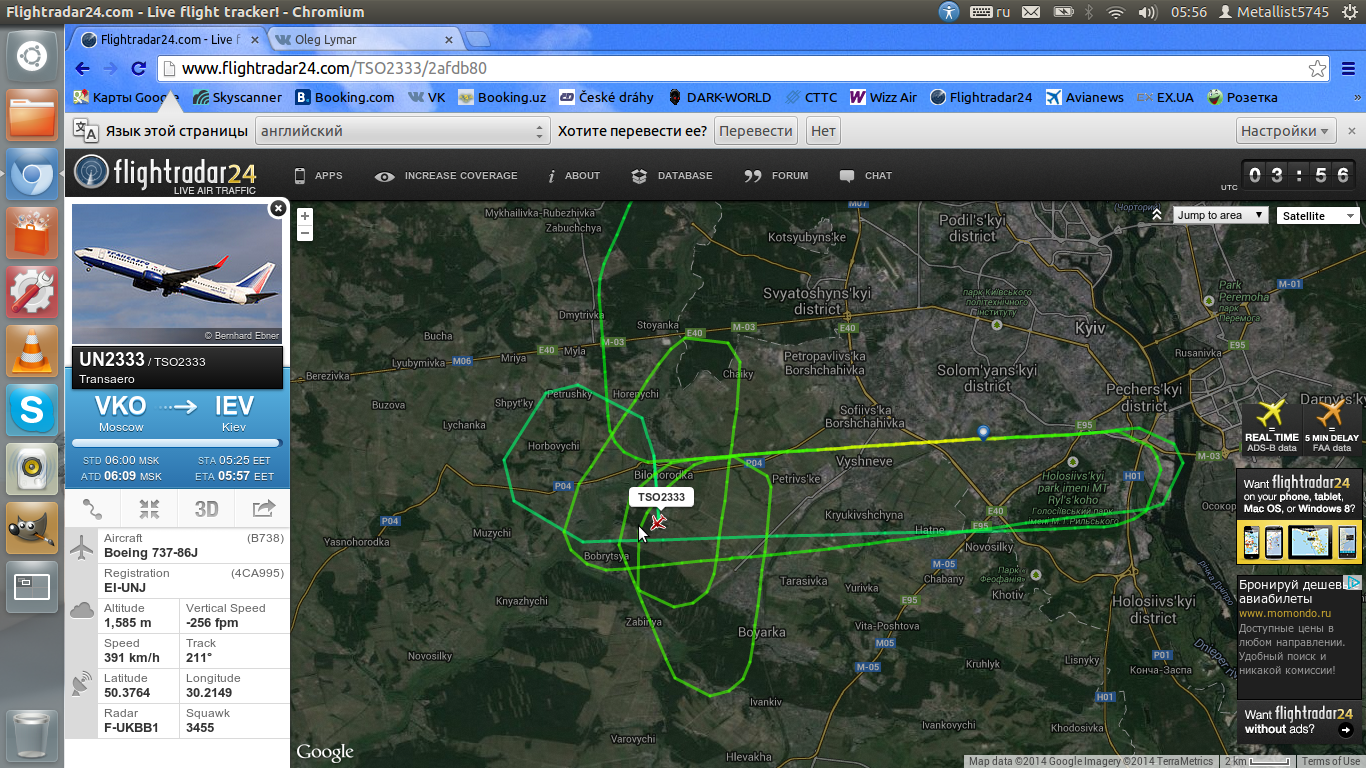 Glotych писав:Хочу посмотреть трек на флайтрадареMRV54 писав:После вылета из Киева самолет со святынями несколько раз облетит столицу Украины, после чего совершит такой маршрут: Луганск — Ужгород — Симферополь (аннексирован Россией) — Харьков. Совершив таким образом крестное знамение над Украиной, крестный ход со святынями вернется в Киев.
