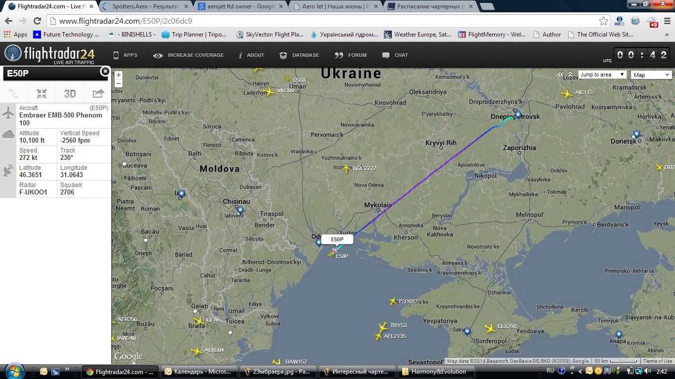 Вот ещё интересная траектория: из Украины летел в Вену, перед Веной развернулся в Хорватию, там снизился, но не сел (в месте снижения на карте ВПП нет) и развернулся опять в сторону Украины.Inguri писав:Знавці, прокометуйте, будь ласка http://obozrevatel.com/politics/70638-u ... v-kiev.htm