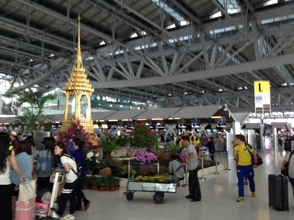 За 40 бат и 25 минут сие чудо инженерной мысли доставило меня в самый большой единый терминал мира, как уверяют сами тайцы: Пройдя к стойкам регистрации авиакомпании Cathay Pacific, я получил посадочный талон, приглашение в лаунж и бумажку на приоритетное прохождение контроля на безопасность и паспортного контроля Пройдя все формальности, попал в чистую зону аэропорта, где, как и в Дубае, есть очень приятные мне маленькие тележки для багажа: И еще много всего интересного: