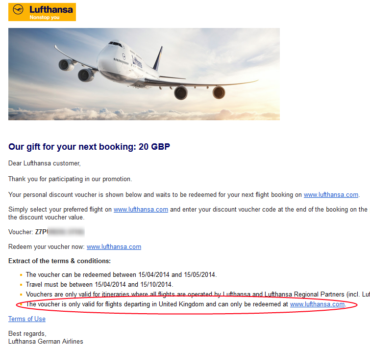 Пришло одно из писем. Про Англию. Код дали, но он работает только на полёты через Англию.