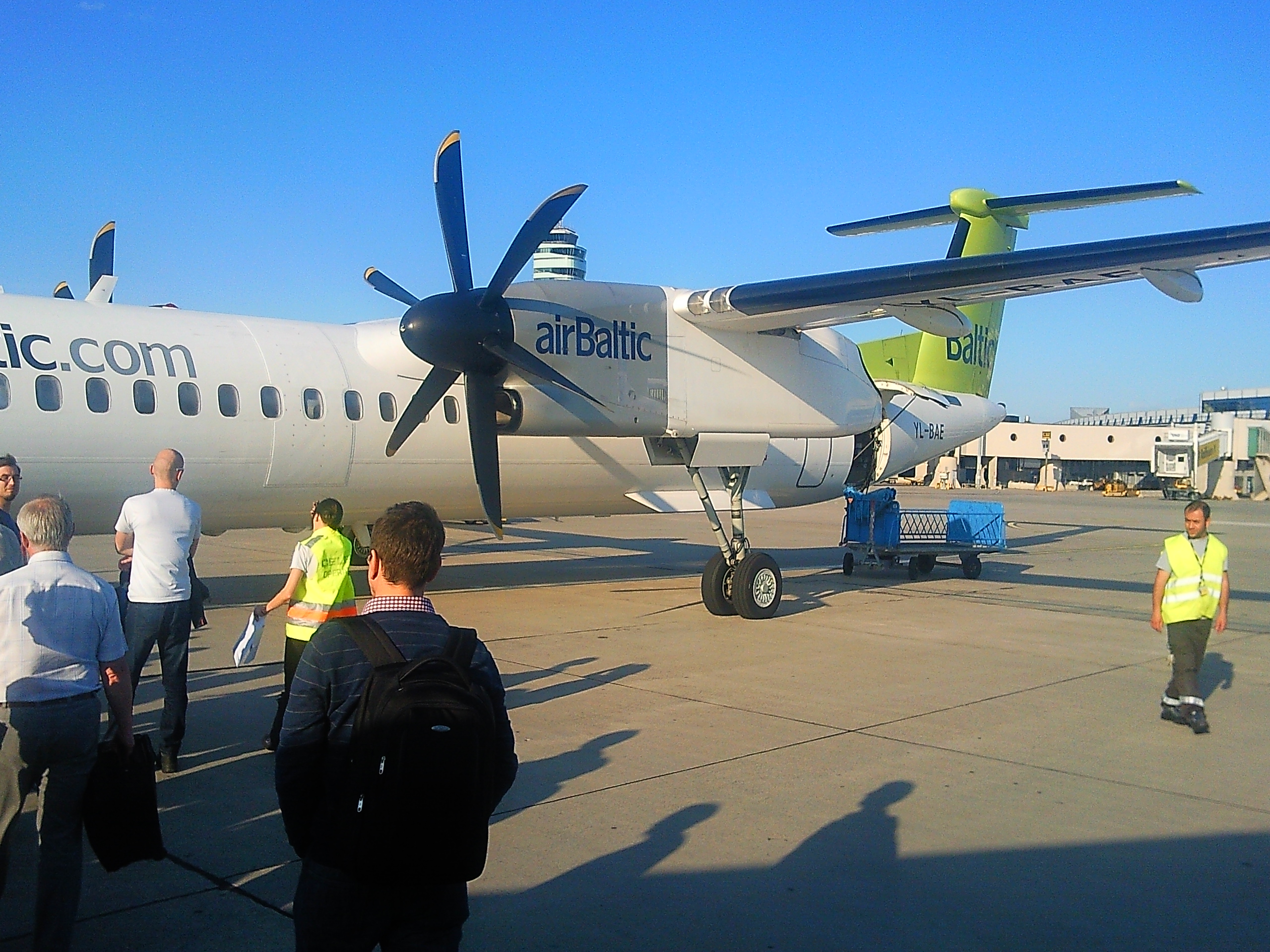 Данный рейс был самым приятным изо всех. Все точно, вовремя, гейты не менялись, самолет на половину заполнен. Хотя ВС и самый старый из Dash8 во флоте болтиков, но по нему не скажешь, очень ухожен. Стюардессы улыбались и были вежливы. В такой атмосфере и приятными пейзажами австрийско-чешских полей в заходящем солнце за окном, я вырубился на все оставшиеся 2 часа полета и проснулся уже в хмурой, раздираемой дождями Риге. После хорошего сна пешком к гейту под холодным дождем…не приятно. Ну да, такой контраст был нужен, ведь необходимо проснуться, сконцентрироваться. Здесь нужно быть на чеку, ведь это аэропорт Риги с его скороговорками и частыми сменами гейтов….