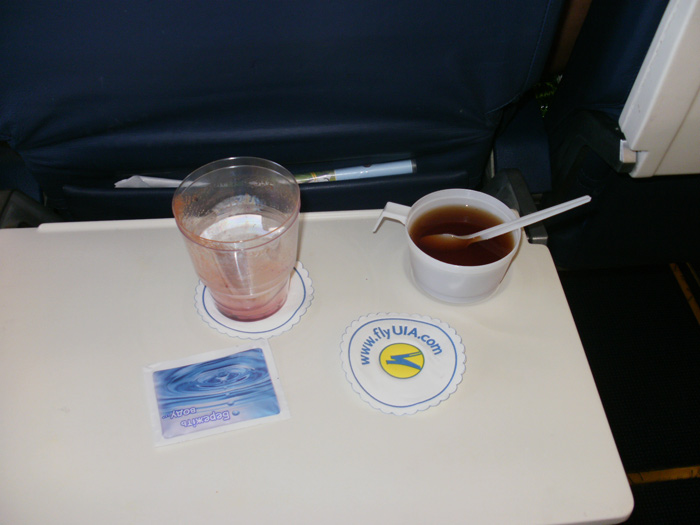 МАУ, рейс PS2111 KBP-SSH-KBP. 17 січня 2010р. Безкоштовно розливали чай, каву, воду, соки. Також розливали вино (на вибір біле або червоне), але вино по склянці на пакса. Автору цих рядків дали 3 склянки