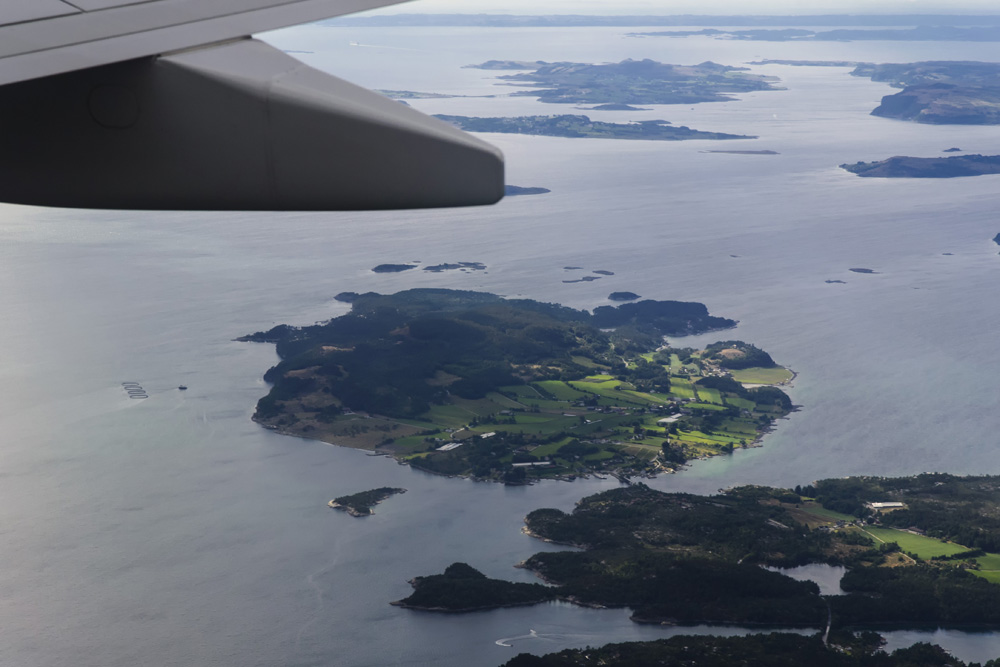 Норвежские фьорды во время перелета из Осло в Ставангер и обратно.