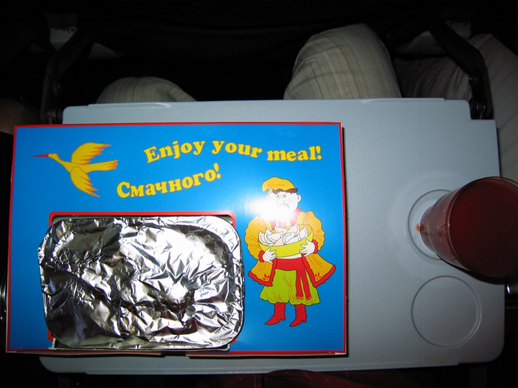 Еда была турецкого кейтеринга, как мне показалось намного лучше чем украинского. Правда горячее было непонятное, курица с шариками толи из теста то ли из растения ))))))) Сок давали по стакану на нос (Коломойский зажал) Зато была еще кола и минеральная вода, чай, кофе. Так не кормят на регулярках. Я был голодным так как 5 часов не ел и не пил, но наелся я капительно