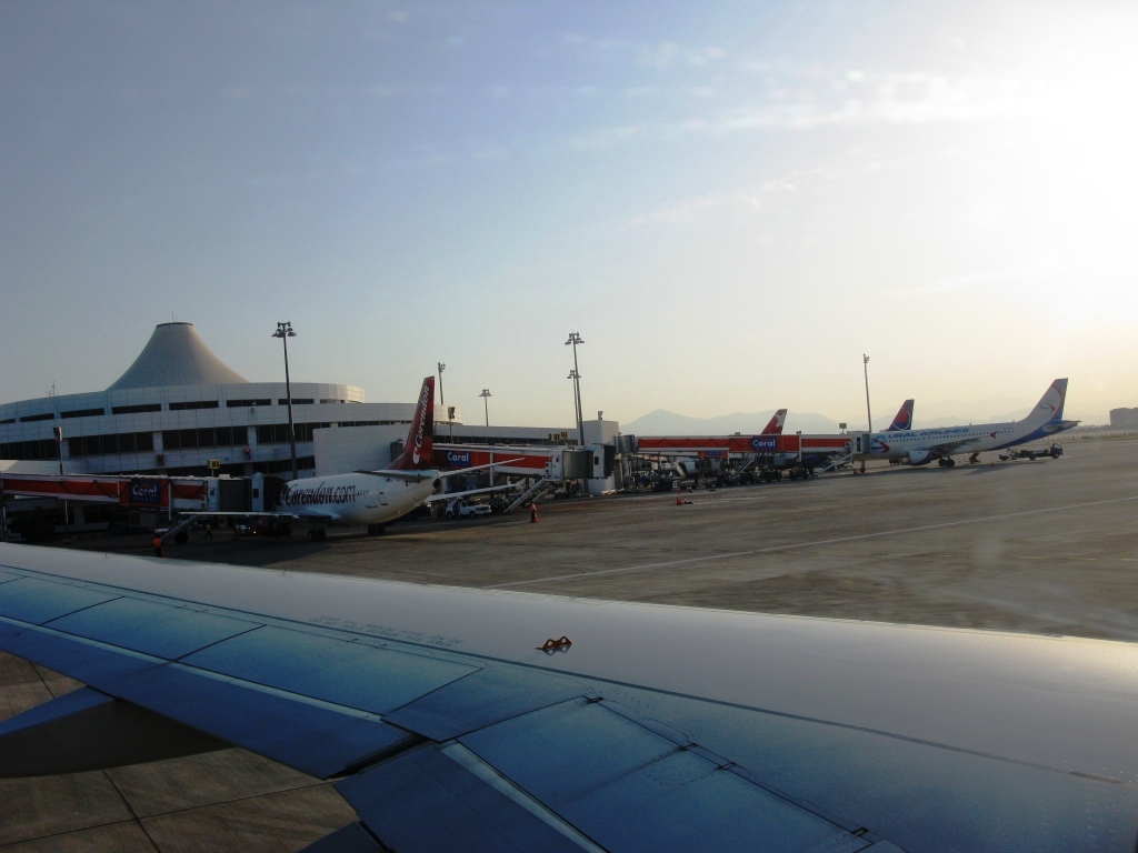 Прилёт Визз осуществляет в Терминал 2. Оттуда добраться, а точнее выбраться можно только на такси - в любой соседний город, ценник есть возле стоянки такси (можно в долларах, евро=разница есть в зависимости от курса, здесь в Украине; что-то типа 30 баксов = 20 евро (в центр Анталии), то есть экономней заплатить в евро - ну и в зависимости от дальности). Если вам хочется добраться ещё дешевле есть служба Havas - типа нашего Атаса - в 2009 стоило около 9 лир, где его искать не знаю, так как воспользовался службой такси. Ещё вариант пройтись пешком до терминала №1 (но это судя по растоянию не близко - около 2-3 км.), там есть городское автобусное сообщение с центром Антальи.