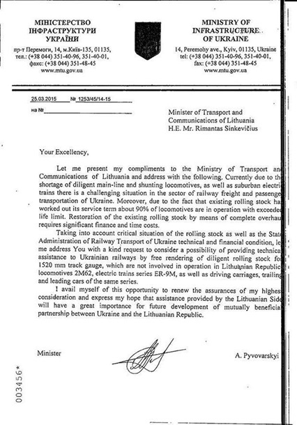 "За средства ЕС Литва в прошедшие годы существенно обновила парк тепловозов и электропоездов. Это позволило вывести из эксплуатации часть электропоездов ЭР9М и тепловозов 2М62. У железных дорог Украины есть острая нехватка электропоездов переменного тока. Особенно это ощутимо на Львовской и Южной железных дорогах, что приводит к необходимости использовать дизель-поезда в пригородном сообщении на электрифицированных линиях", - отметил он.