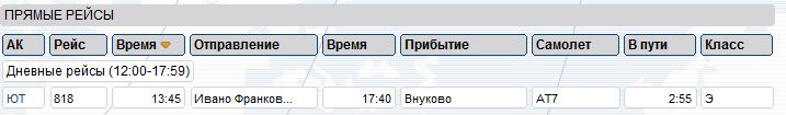 Ивано-Франковск Москва (Шереметьево) Z6 661 __3____ 12:20 15:35 EMB-145 29.12.10 05.01.11