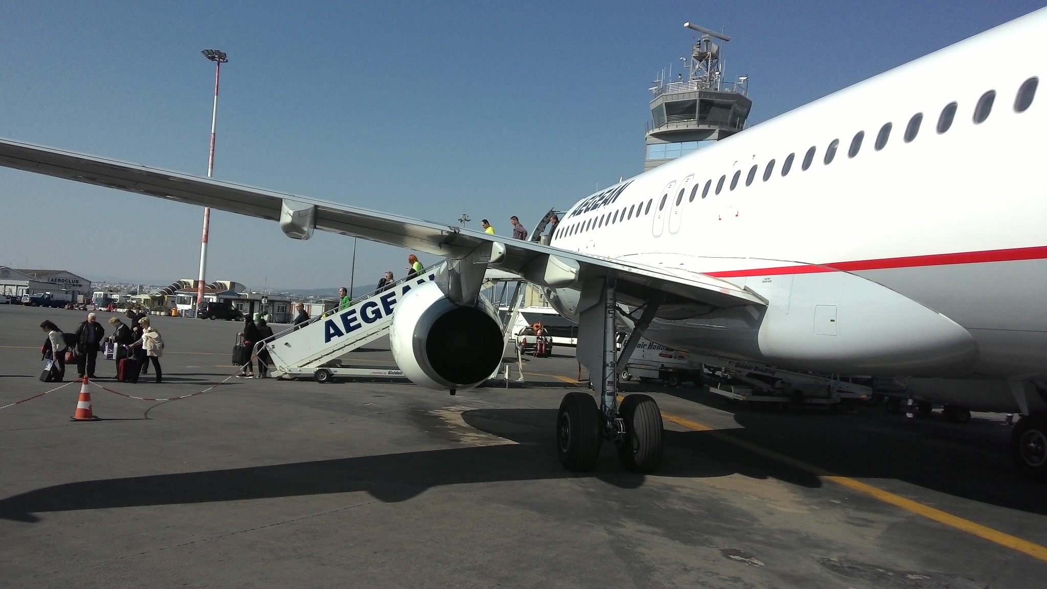 На сегмент Афины-Салоники стоял 10 летний А320 (SX-DGU) Aegean. При онлайн регистрации система мне самостоятельно выбрала место 10F, но это начало крыла и я надеялся на заход над городом, поэтому взял другую сторону, место 22А. Компоновка данного ВС была чисто лоукостовская, как у Wizzair (180мест) без бизнеса, шаг кресел реально не велик. Заполнение – 100%. После комфорта МАУ почуствовал себя немного стесненным. Но устать не успел, так как до Салоников всего 300км и они покрываются за 30 минут. При этом понимаю, что можно было бы быстрее. ВС набирает высоту 8км., при этом стюардессы успевают разнести сендвичи/круасаны/чай/кофе/воды/соки. Приземлились на 20 минут ранее. В расписании стоит продолжительность полета 50 минут. После посадки половина салона встала и через 2 выхода вышла.